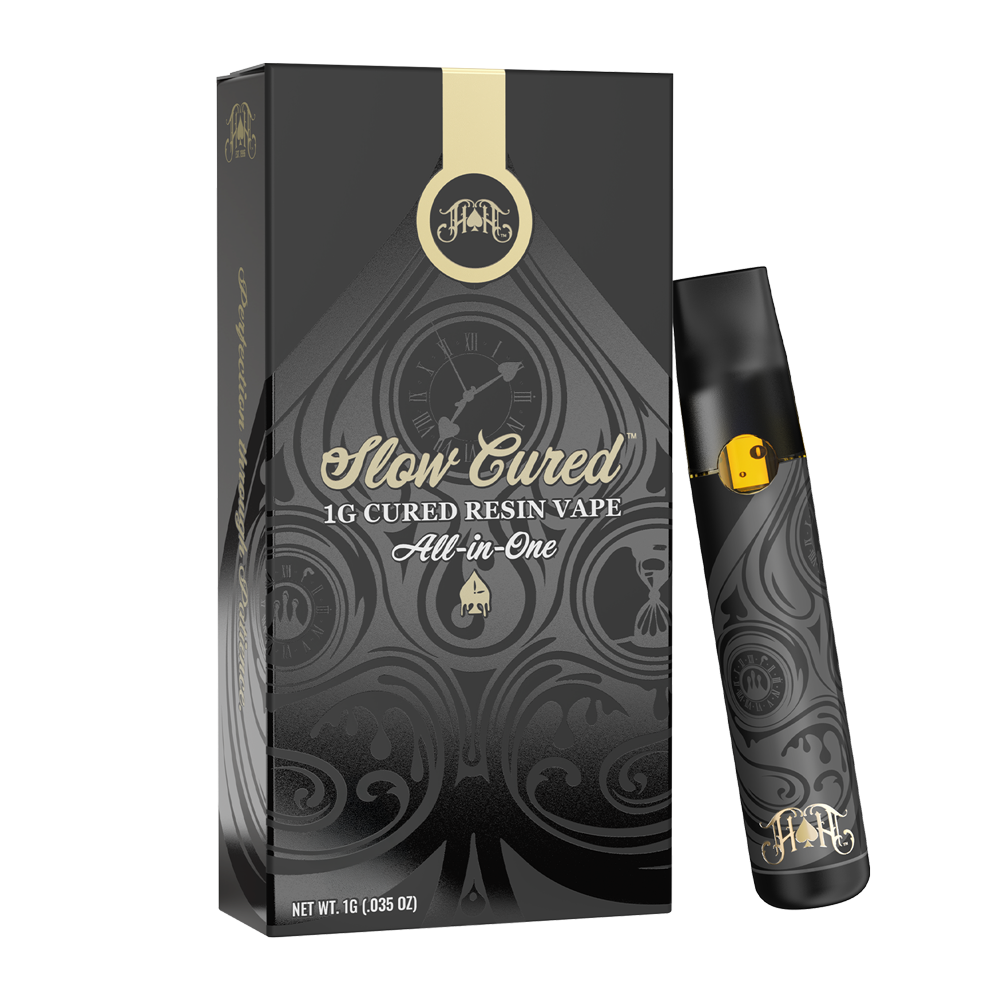 Introducing the next evolution of flower, captured at its most honest. Heavy Hitters Slow Cured Resin AIO begins where great flower lingers, in time. We hand select the finest indoor flower at peak aroma, then preserve its character through our Slow Capture™️ method with over 1,000 unrushed hours of careful extraction. Finally, we lock it in a sleek and convenient custom device so every pull feels like cracking open a perfectly cured jar.